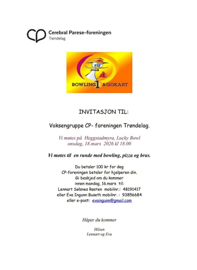 CP- Foreningen Trøndelag inviterer til: Bowling for voksengruppa!